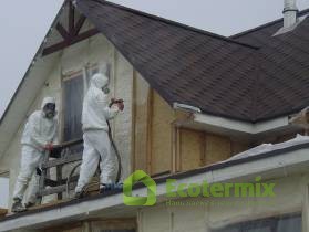 Метод напыления позволяет получать цельное, полностью герметичное покрытие, не пропускающее холод и влагу. Выполнять нанесение покрытий следует подготовленным специалистам. Компания «Экотермикс» предлагает услуги по утеплению самых различных помещений, фронтонов, ангаров и складов, контейнеров, а также разного типа трубопроводов методом напыления пенополиуретана. Мастерство профессионалов дополнит прекрасные качества полимера и обеспечит вас на долгие годы уютной мансардой, защищенной со всех сторон утепленными по всем правилам фронтонами.
